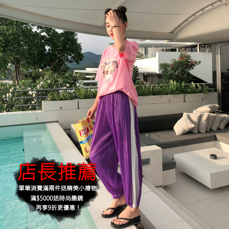 韓系Chic氣質顯白紅女神渡假雪紡吊帶百褶連身褲