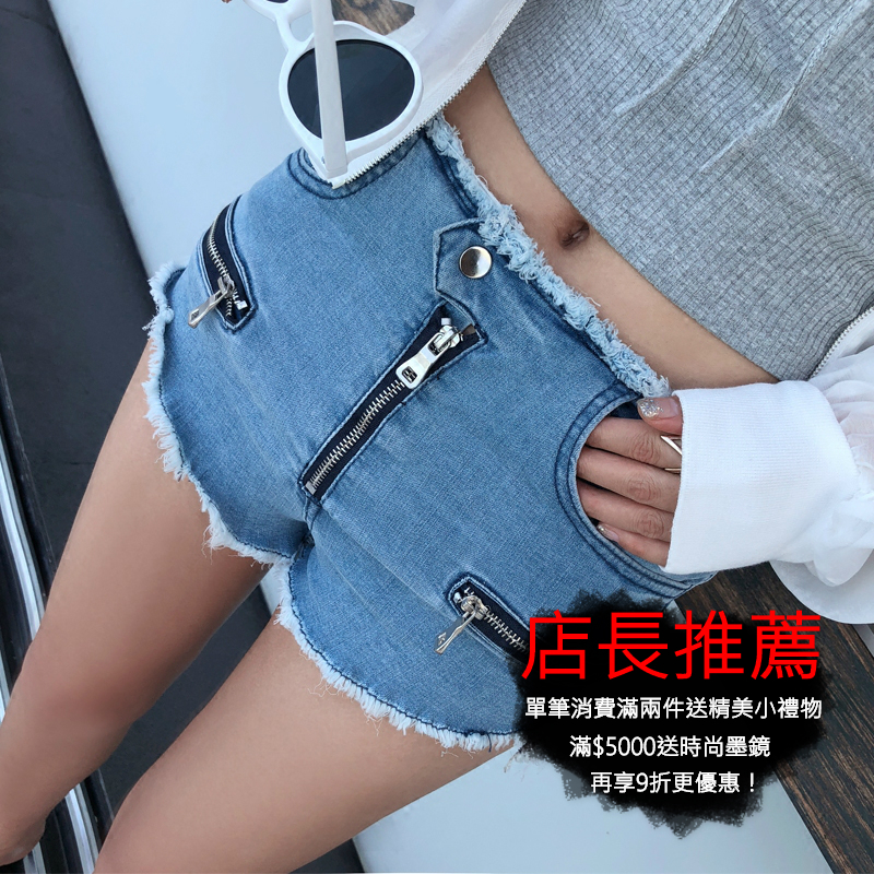 歐美個性顯瘦百搭黑色刷破乞丐牛仔短褲