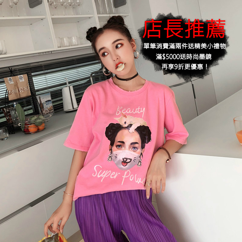 怪異少女新潮流百搭印花字母短袖圓領T恤